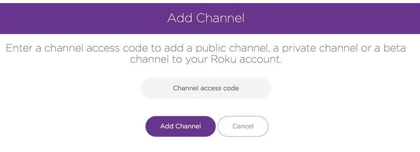 Step 3. Click on that link, enter the channel access code, and select "Add Channel".