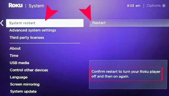One of the best and easiest ways to fix the Roku black screen issues is to restart your Roku. All you have to do is to disconnect the power wire and then reconnect it. If you have a TV that has Roku on the inside, then you need to turn it off and then turn it on again.