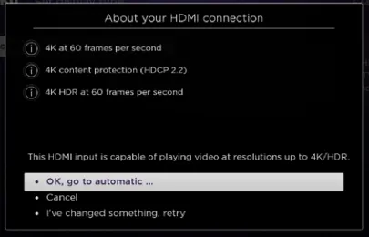 Usually, you will see input options like HDMI 1 and HDMI 2. If required, then you can cycle through them. Wait for a few seconds and then the Roku logo will appear on your screen.