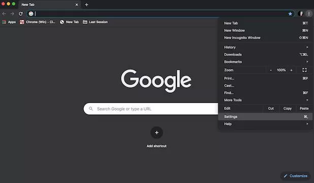 Step 1: Select the menu icon given at the far-right corner of your Google Chrome toolbar and then choose "Settings". You can also open the Settings screen by going to the "Chrome://Settings" option. Please enter this detail in the address bar without any quotation marks.