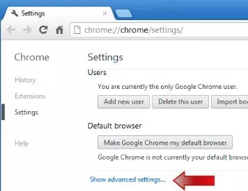 Step 2: Select "Show advanced settings" given at the end of the Settings menu.
