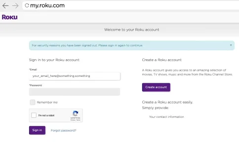 Step 2: Enter the sign-in credentials and log in to your Roku Account.