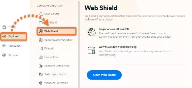 Step 3: Go to the "Web Shield" module given on the left to view the settings given on the right pane.