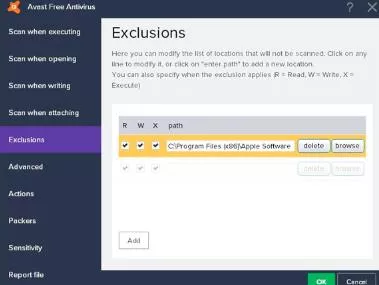 Step 6: Select the Add button for adding a website in the Exclusions list.